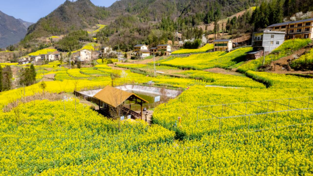 梨坪被称为“花彩山村”,每年3至5月,高山油菜花、桃花、梨花竞相绽放,错落有致,鲜花与传统人居相得益彰,风光秀美,漫步在田野间,徜徉在花海中,享受着田园风光。