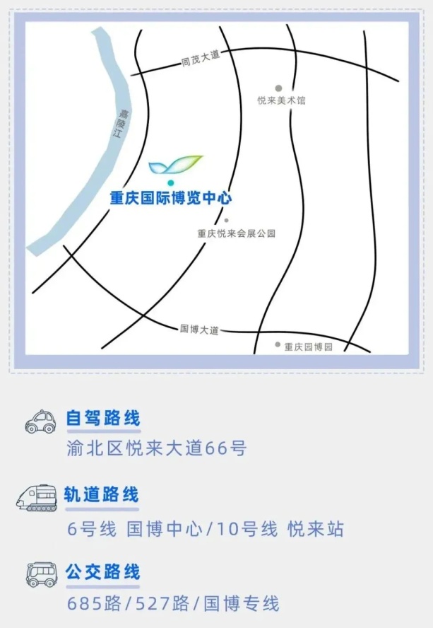 公共交通:轨道交通5号线至“园博中心站”下车;或单轨3号线至“园博园站”下车,步行至园博园东门