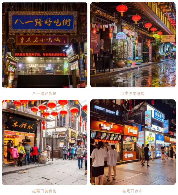 这里集结了众多具有重庆特色的小吃,是重庆主城区人气较旺的美食街。胖子妈串串、好又来酸辣粉、山城小汤圆、王鸭子、麦丽丝串烧、吴江路生煎、重庆盅盅面都是不可错过的美食。
